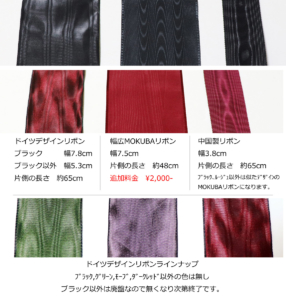 ※アイボリー地の場合に限り、フランス製の幅広リボン(モアレではありません)もお選びいただけます。